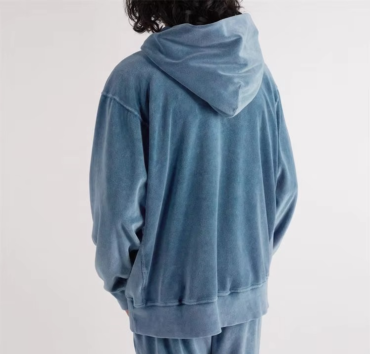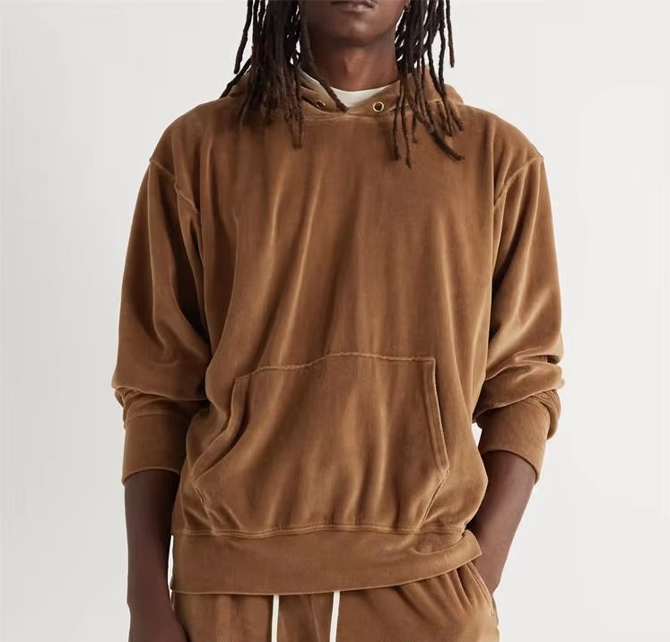 Sweat à capuche en velours uni vintage sans cordon de serrage pour un produit unisexe en tissu de meilleure qualité