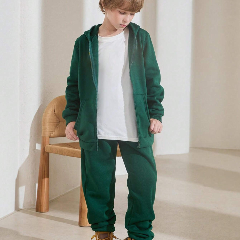 Custom kids tracksuit premium fleece soft fabric stylish fit private label branding logo embroidery wholesale bulk orders trendy