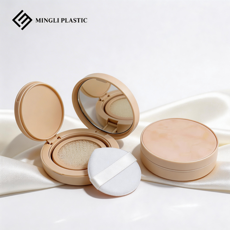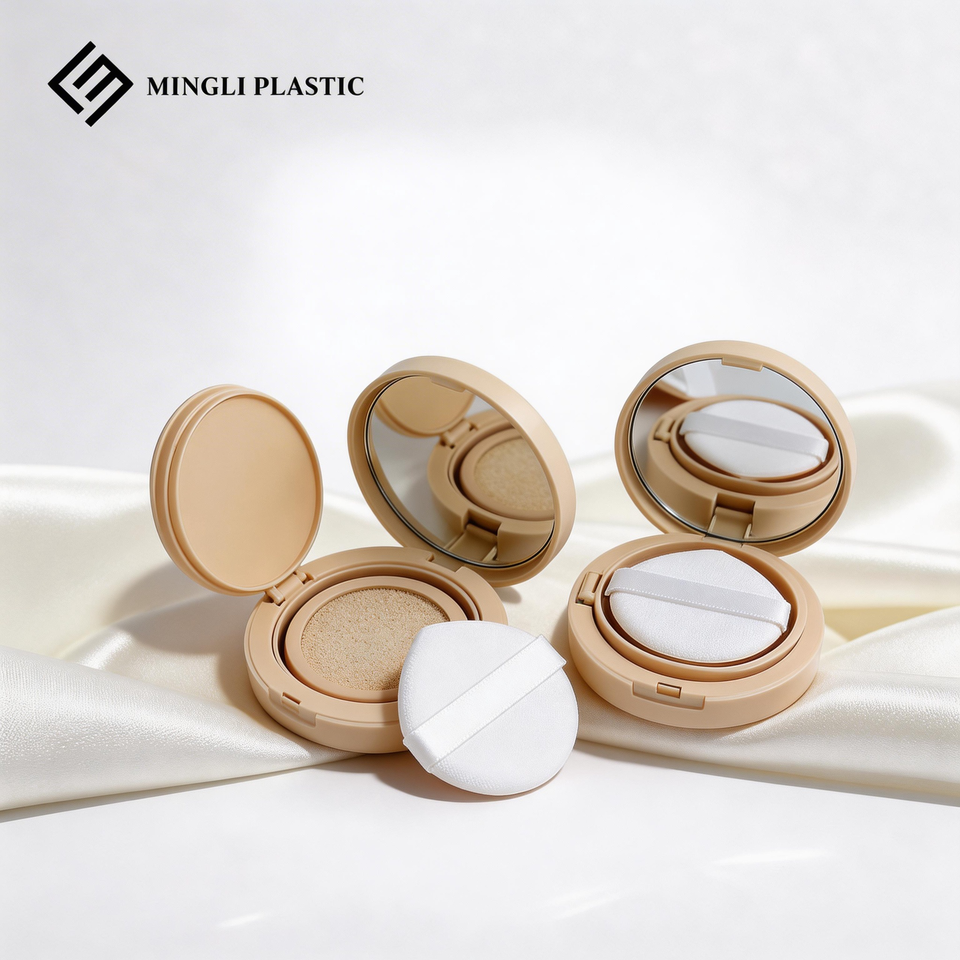 Boîtier compact en plastique ABS rose doré, recyclable et lavable, 13g, pour fond de teint coussin d'air, crème BB, avec logo personnalisé