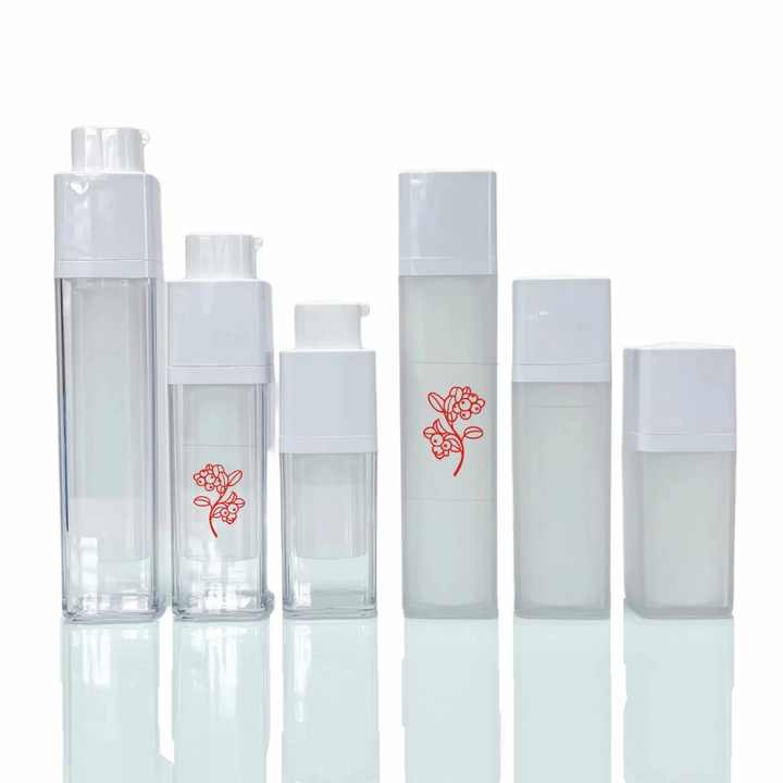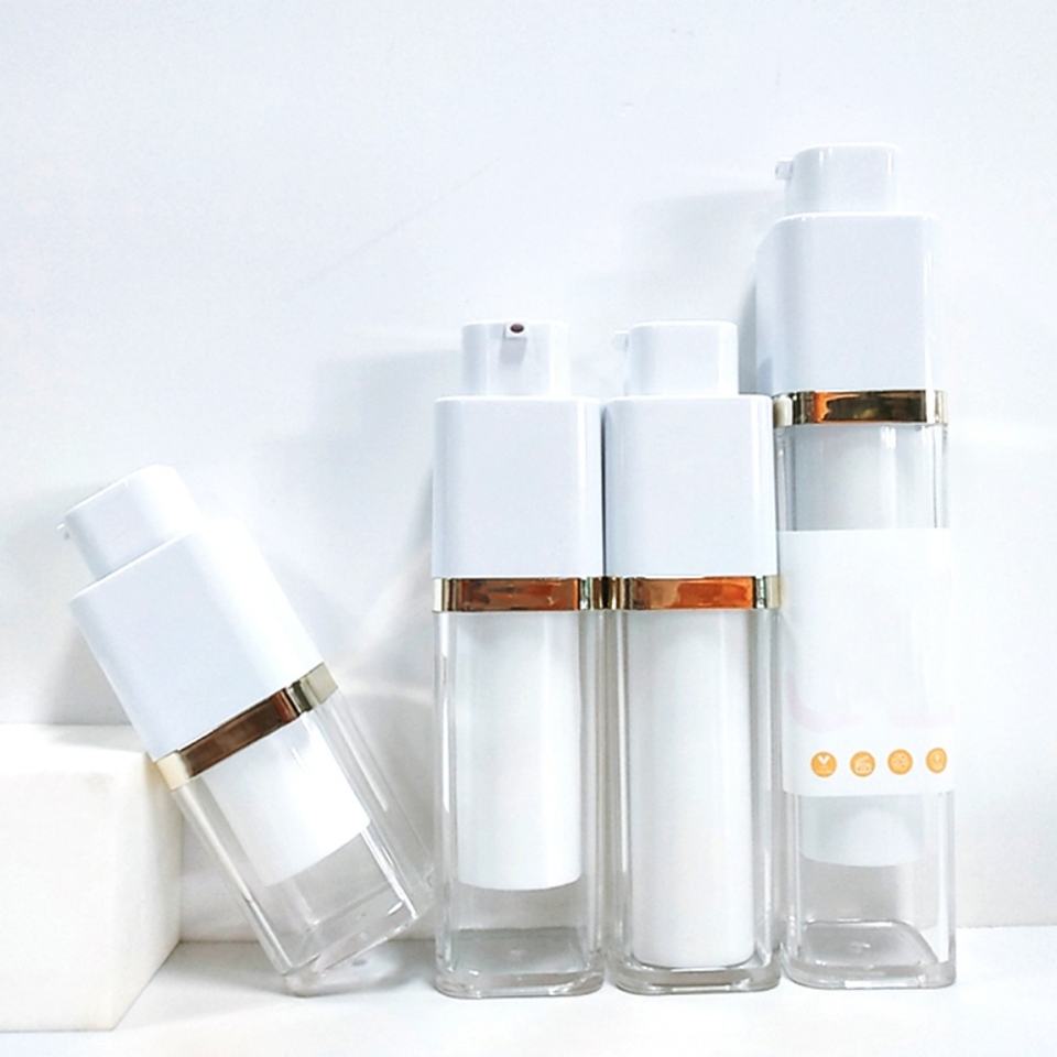 Flacon vide carré transparent en plastique sans air de 15 ml, 30 ml, 50 ml avec logo personnalisé, pour shampoing et fond de teint, avec bouchons pompe blancs
