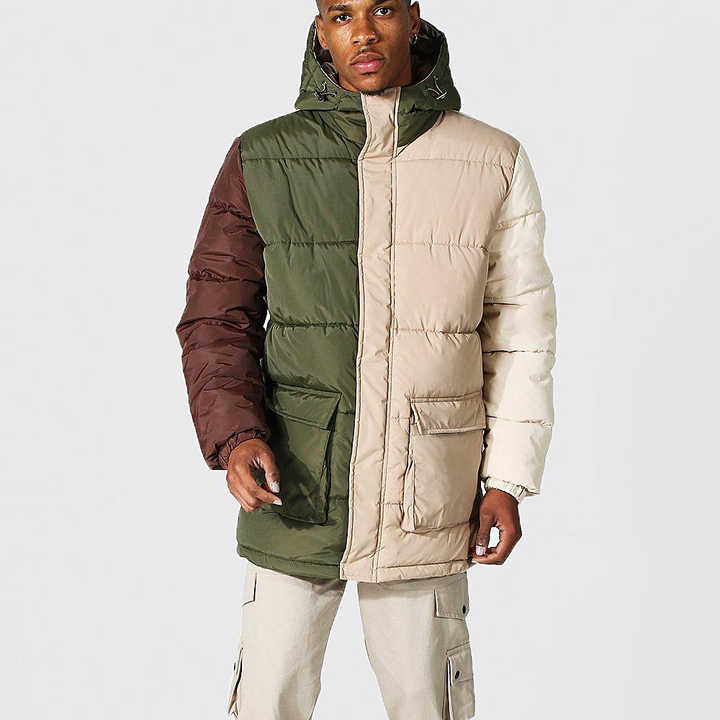 2022 Logo personnalisé hommes coupe-vent bouffant manteau chaud multicolore panneau imperméable toile col montant pour l'hiver usage extérieur