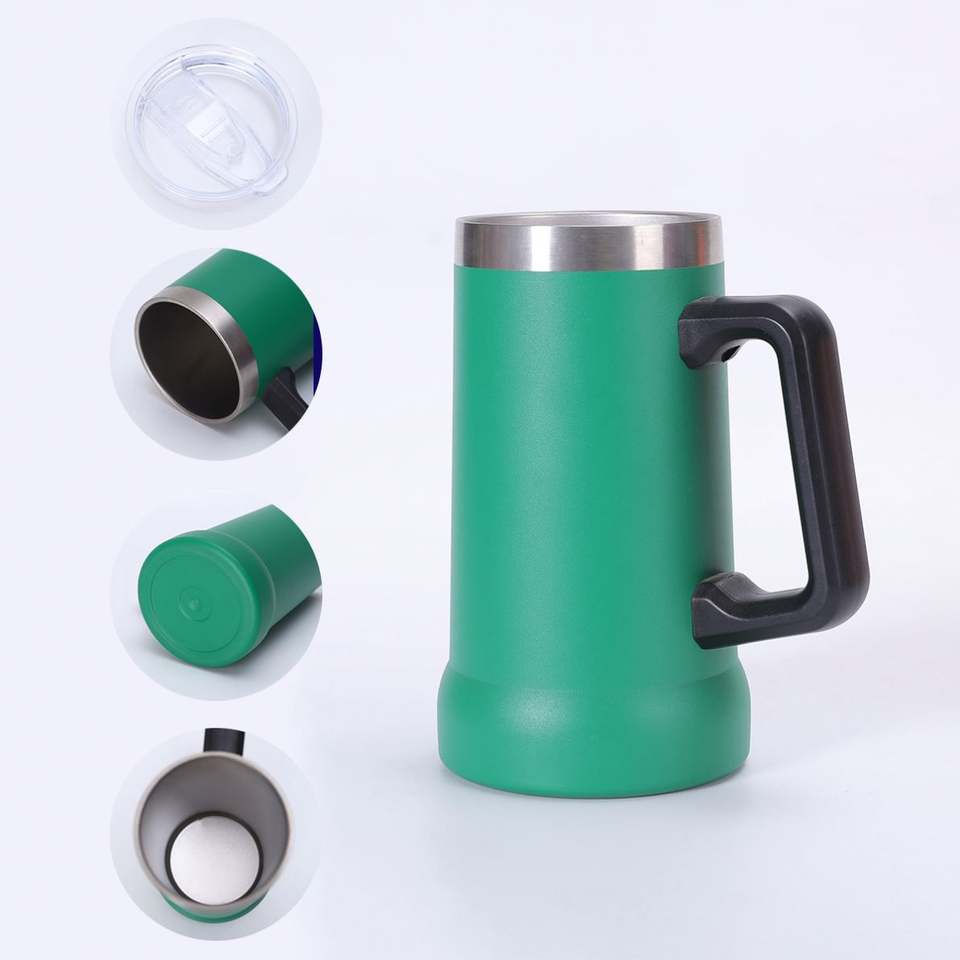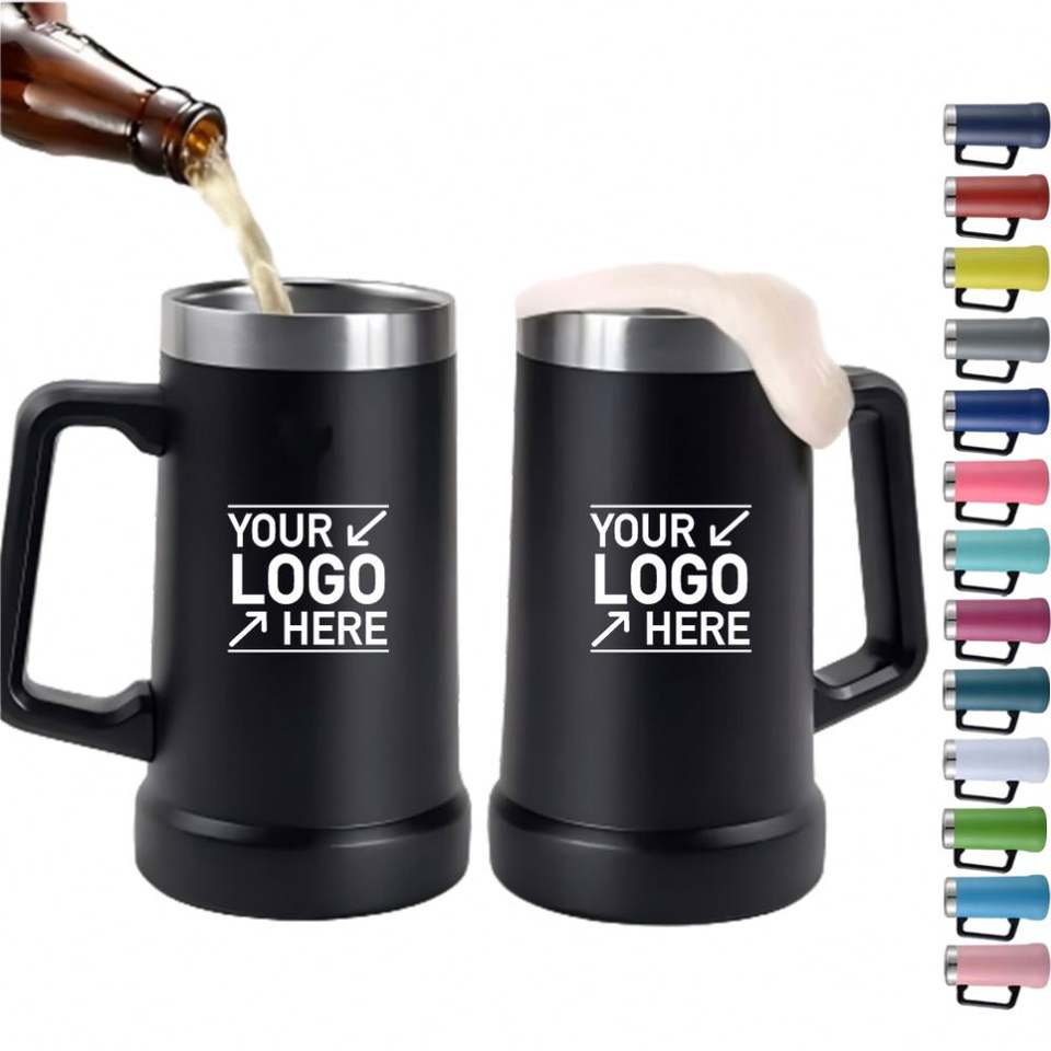 Mug à bière classique de 24 oz avec poignée, logo personnalisé, double paroi isolée en acier inoxydable, revêtement en poudre