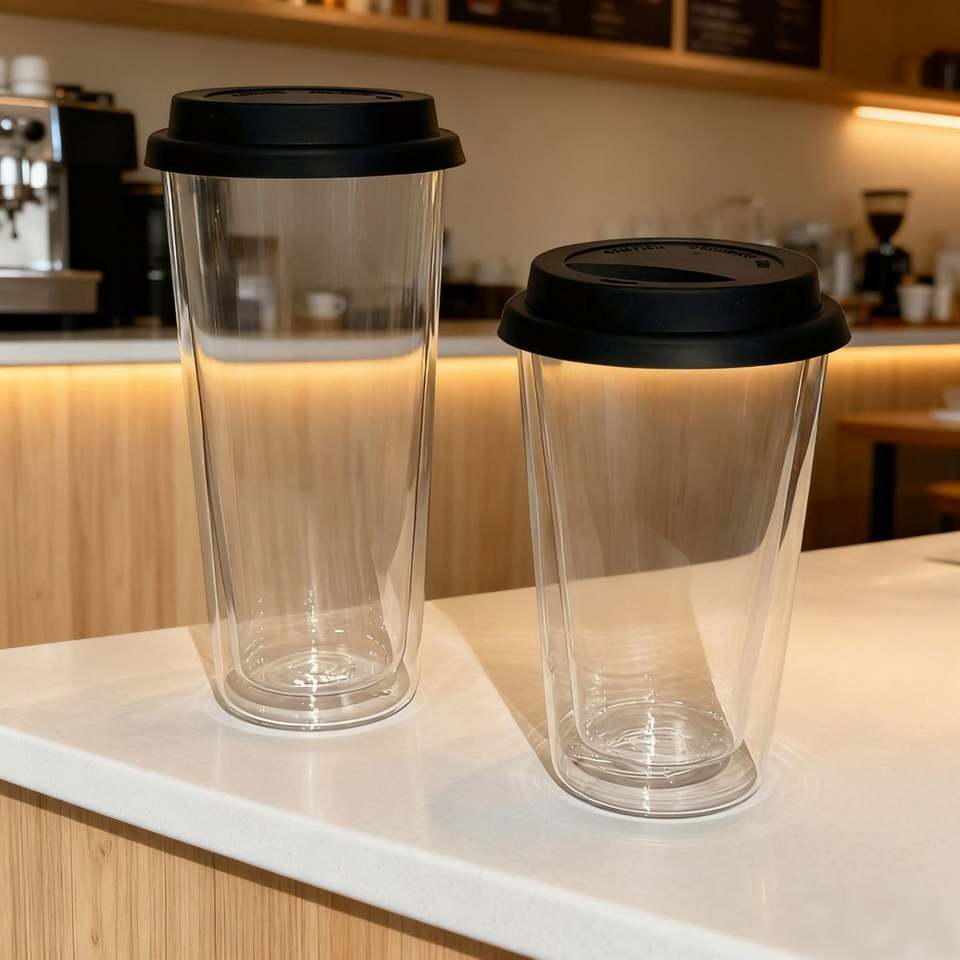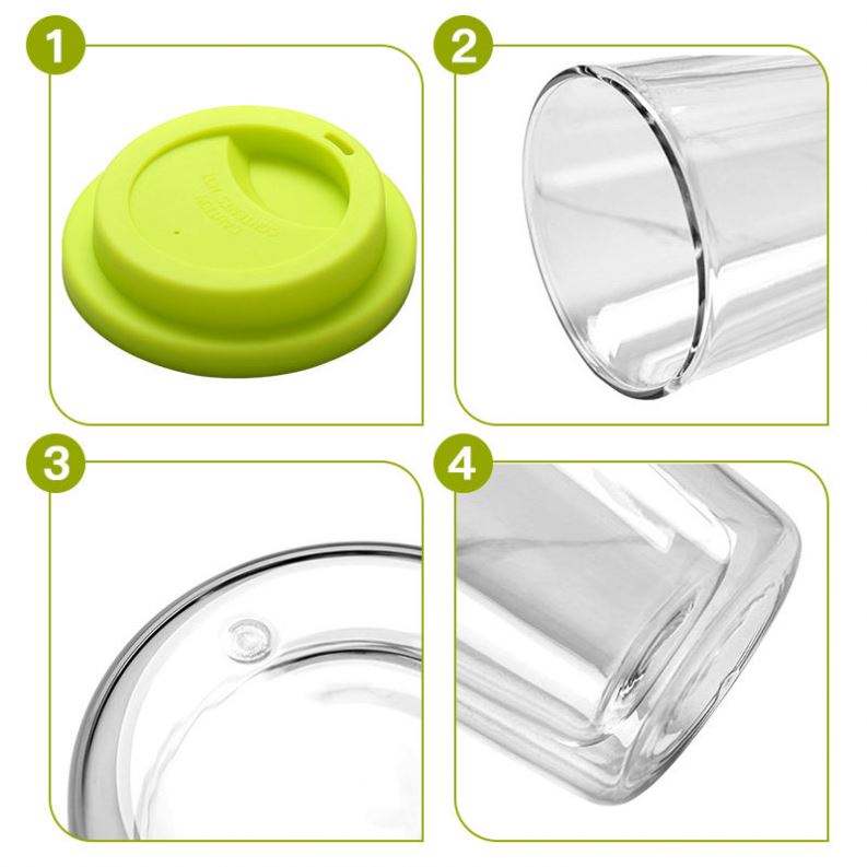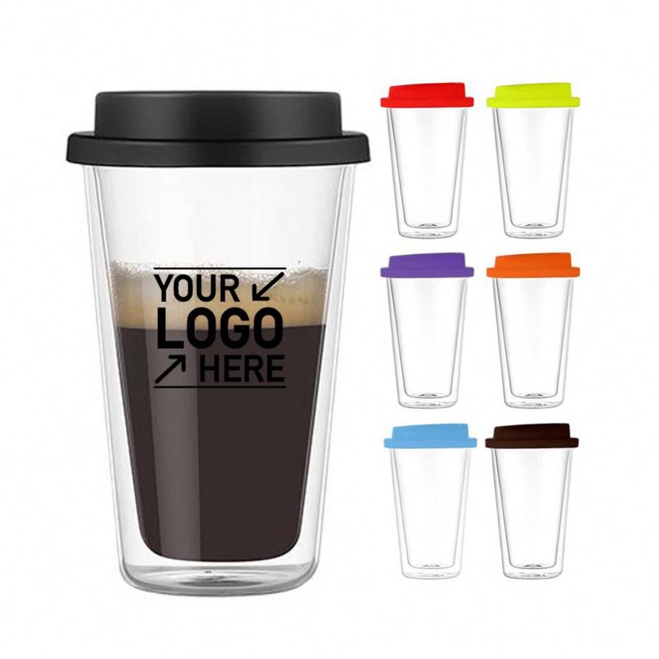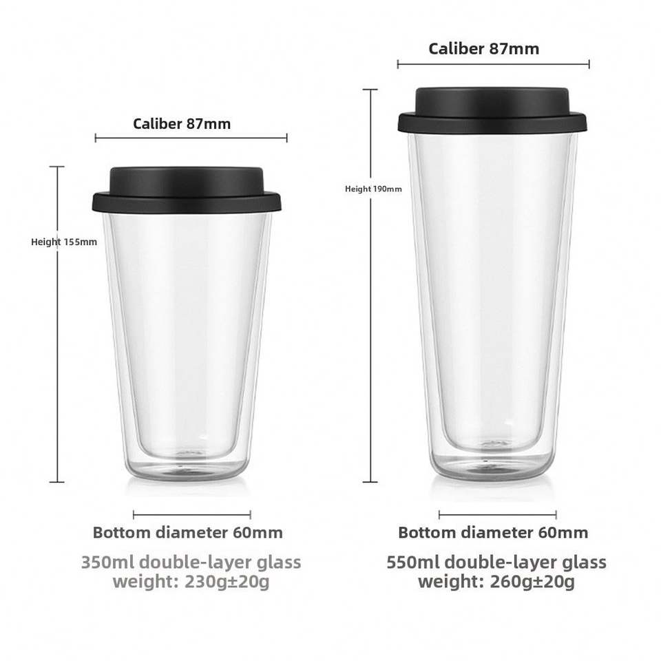 Mug à thé, lait ou café en verre borosilicate personnalisé avec logo, 350 ml, 550 ml, gobelet à double paroi en verre de 12 oz avec couvercle en silicone