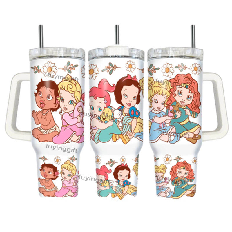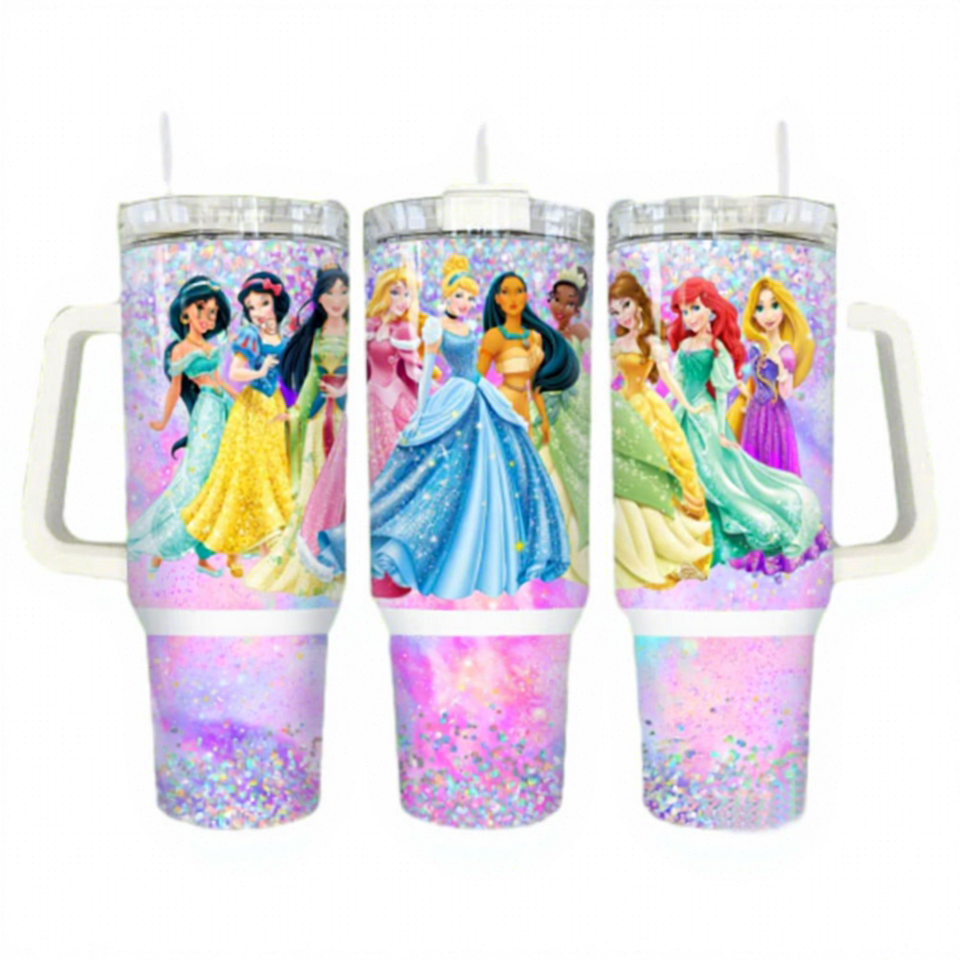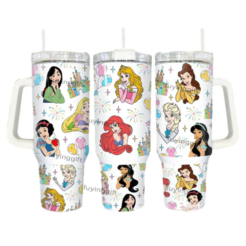 Custom logo 40oz Cartoon Princess Stainless Steel Vacuum Tumbler Insulted Water Bottle Thermal Cup with Handle and Straw
