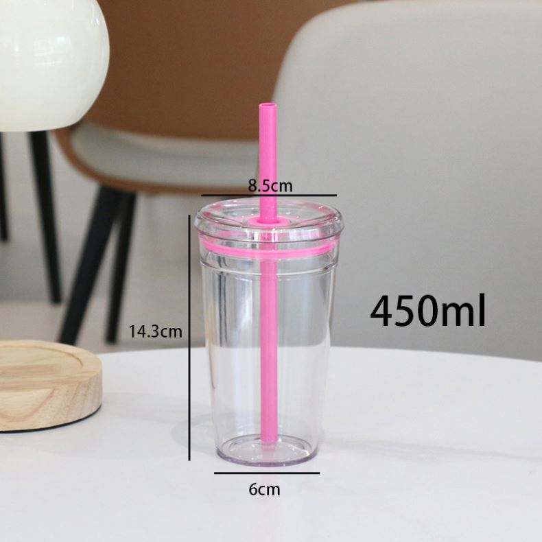 Gobelet en plastique transparent réutilisable de 450 ml avec logo personnalisé pour café, thé au lait, jus de fruits, avec paille