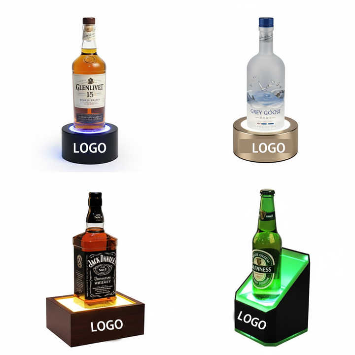 Éclairage en acrylique avec logo personnalisé, présentoir rotatif à 360 degrés, décoration de boutique, présentoirs à vin, présentoirs à champagne