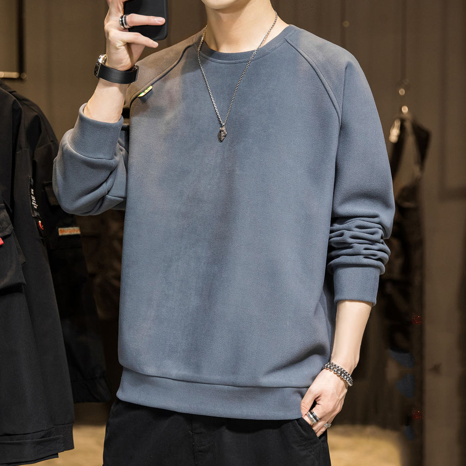 Sweat-shirt à col rond en coton français lourd avec poche kangourou, logo personnalisé, basique, pour homme