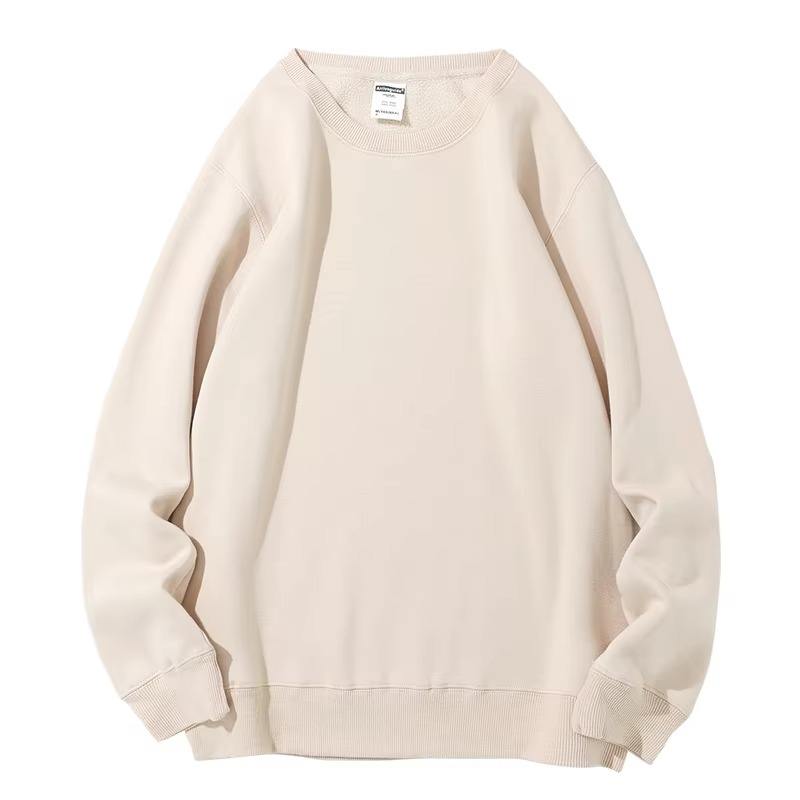 Logo personnalisé beige mode style à manches longues automne polaire pulls unisexe polaire coton poids lourd col rond sweat