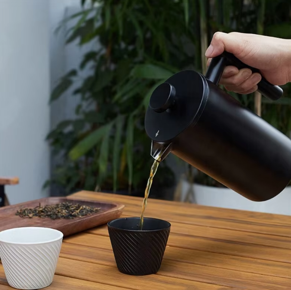 Carafe à café isolée à double paroi en acier inoxydable noir avec logo personnalisé, cafetière noire