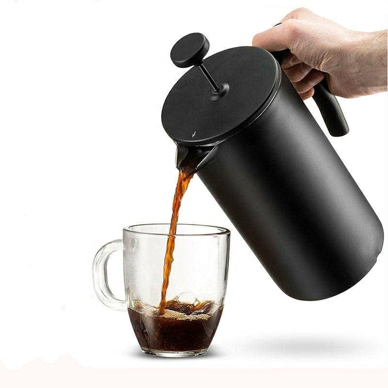 Logo personnalisé Presse à café française noire Pichet à café isolé à double paroi Cafetière à presse française en acier inoxydable noir