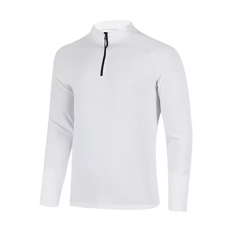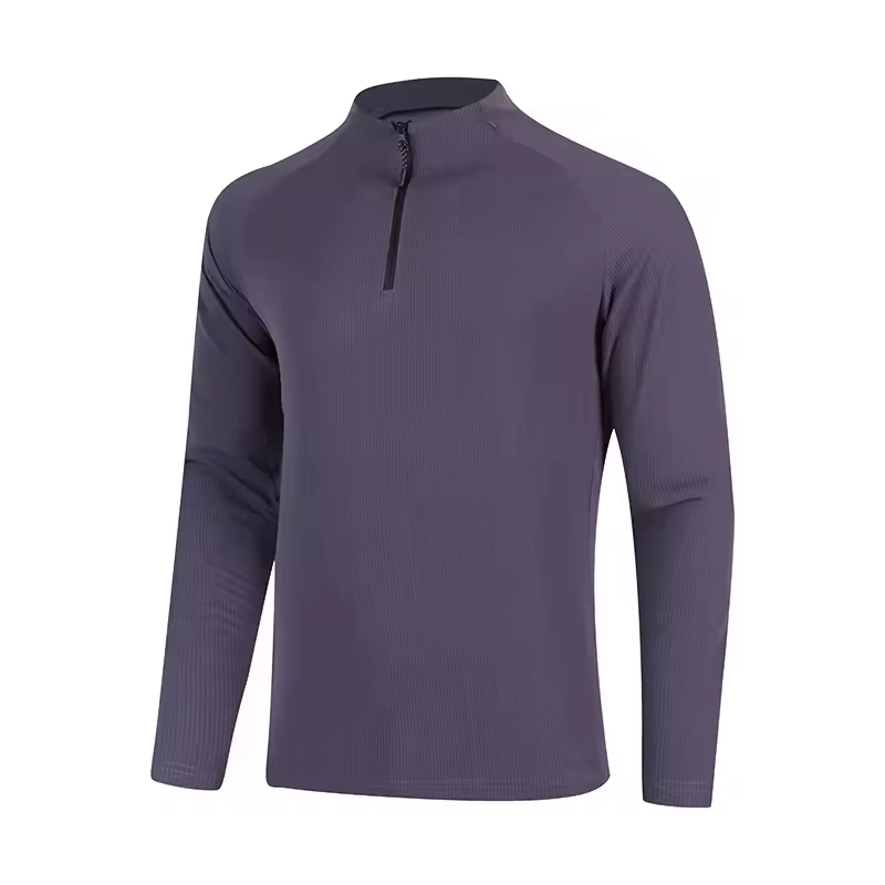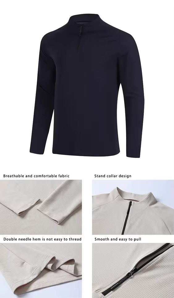 Logo personnalisé, polyester respirant, spandex, fermeture éclair quart de tour, manches longues, homme, séchage rapide, logo sur le devant