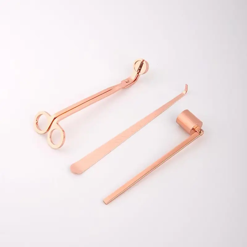 Kit d'entretien de bougies personnalisé avec logo, ciseaux coupe-mèche gravés en cuivre, argent, noir, or rose pour bougies