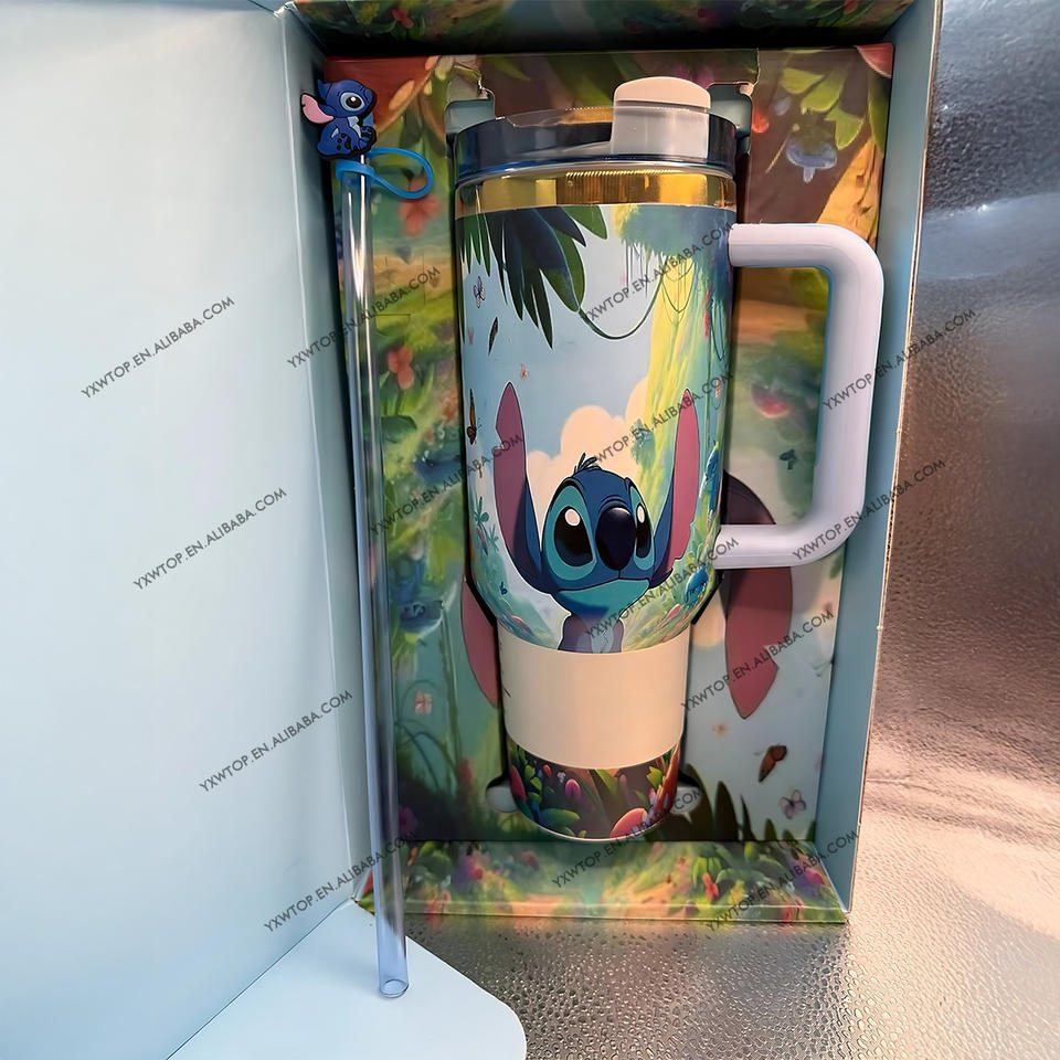 Tasse de voyage sous vide à double paroi en acier inoxydable 40oz avec poignée isolée avec boîte-cadeau Logo personnalisé Cartoon Lilo Stitch Monster