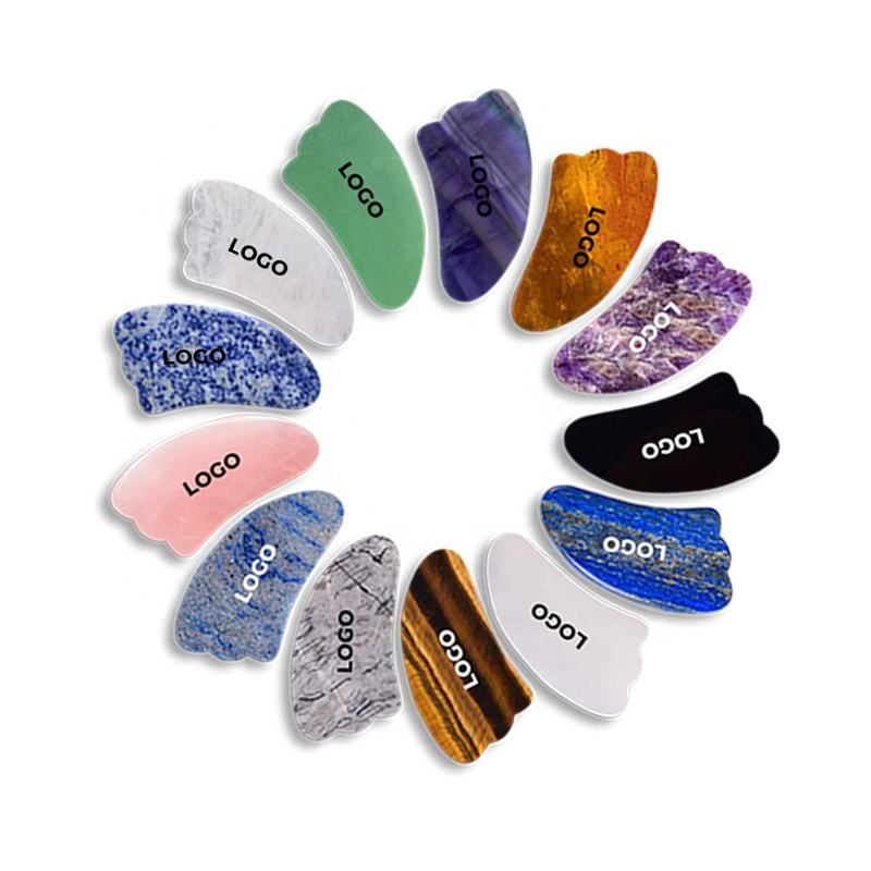 Logo personnalisé Griffe Quartz Rose Naturel Aventurine Verte Cristal Visage Jadéite Jade Gua Sha Masseur Gua Shua Guasha Outil Facial
