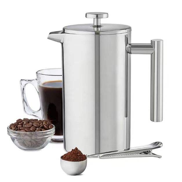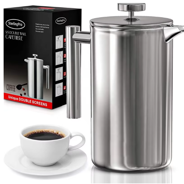 Cafetière à piston en acier inoxydable à double paroi isolée avec logo personnalisé