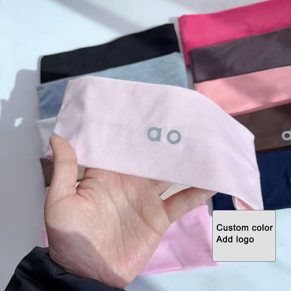 Bandeau de cheveux en coton à double face avec logo personnalisé, élastique, absorbant la transpiration, large, uni, accessoire de yoga pour femmes