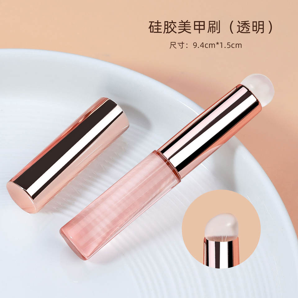 Logo personnalisé Pinceau à poussière pour les lèvres avec manche en cristal Applicateur de fard à paupières pour rouge à lèvres Plaques d'estampage pour ongles Brosse à ongles en silicone