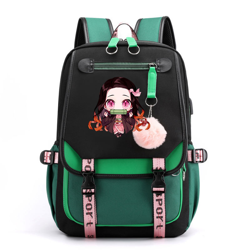 Sac d'école à grande capacité avec logo personnalisé Demon Slayer Nezuko Kawaii Cartoon Manga pour voyager, sac à dos pour filles, sac à dos d'anime