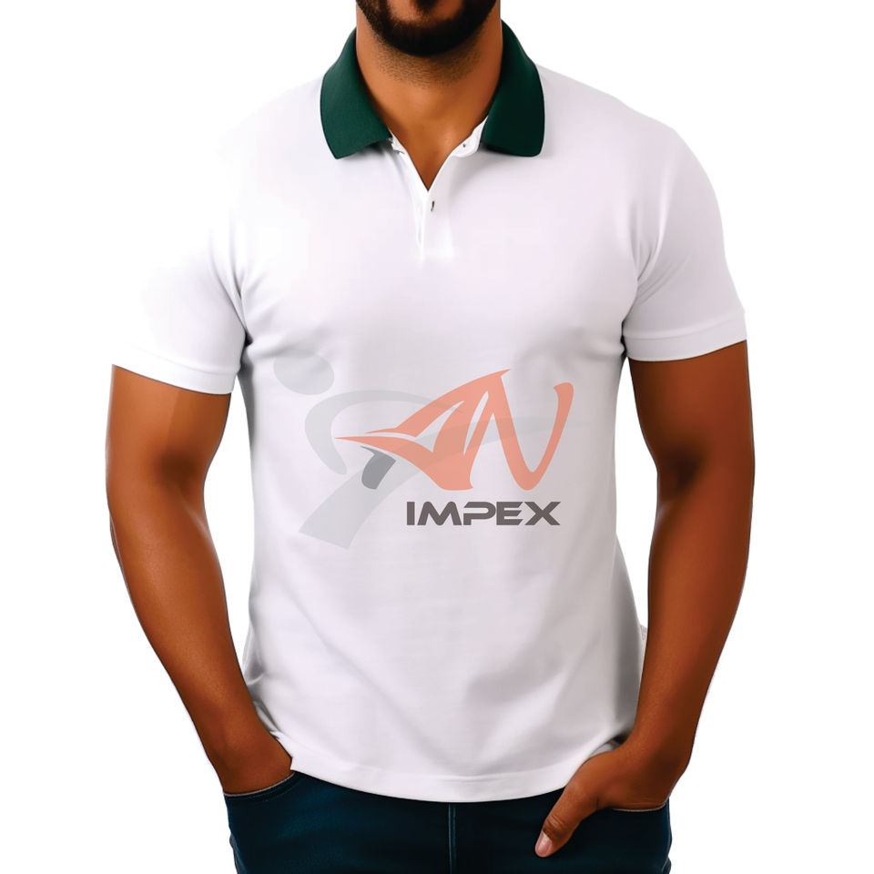 Polo pour homme en coton piqué extensible avec logo personnalisé, col blanc, sans couture, de marque, pour le golf