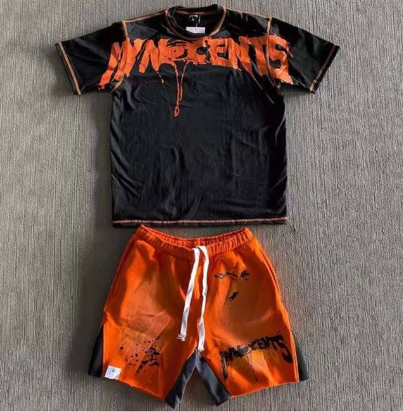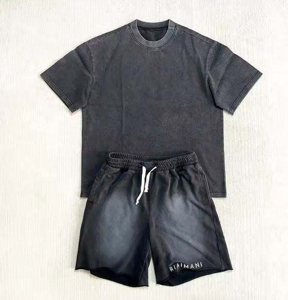 Costume d'été deux pièces pour hommes avec logo personnalisé Ensemble short et t-shirt délavés à l'acide 2 pièces vêtements pour hommes