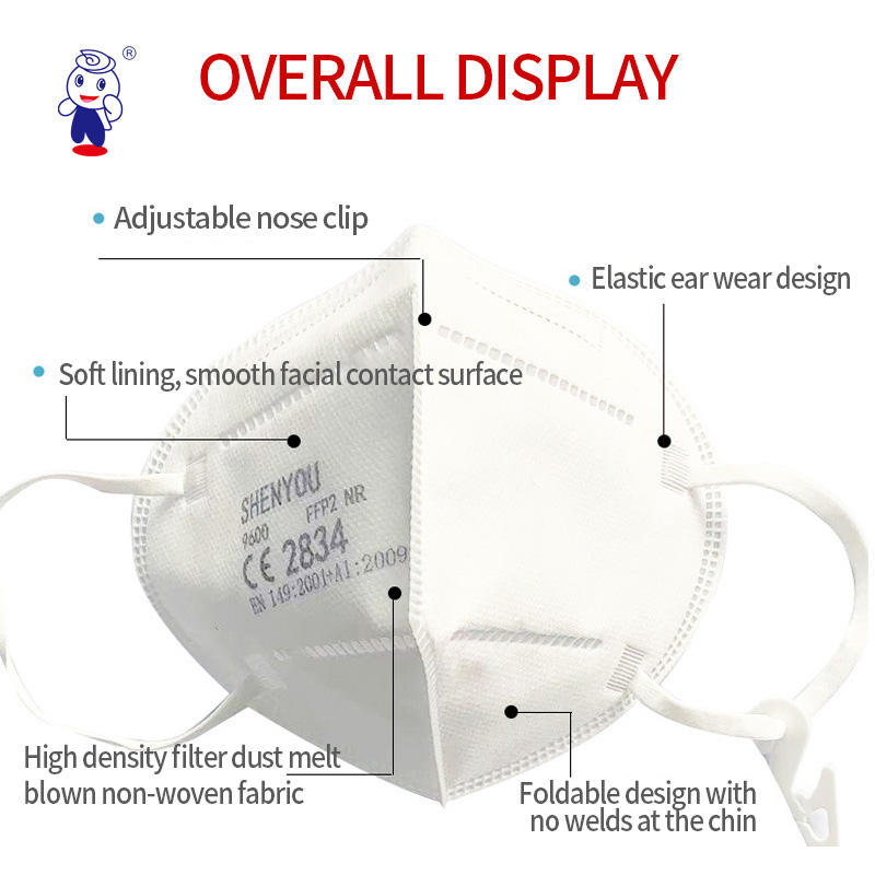Masque facial anti-poussière jetable 5 plis KN95 avec logo personnalisé, imprimé, en tissu non tissé, masque KN95 FFP2