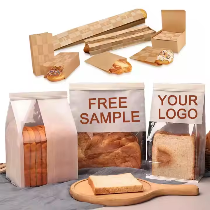 Sac d'emballage alimentaire jetable avec logo personnalisé, sac en papier kraft avec revêtement en aluminium et cire, pour boulangerie, pâtisserie, sandwich, pain, hamburger
