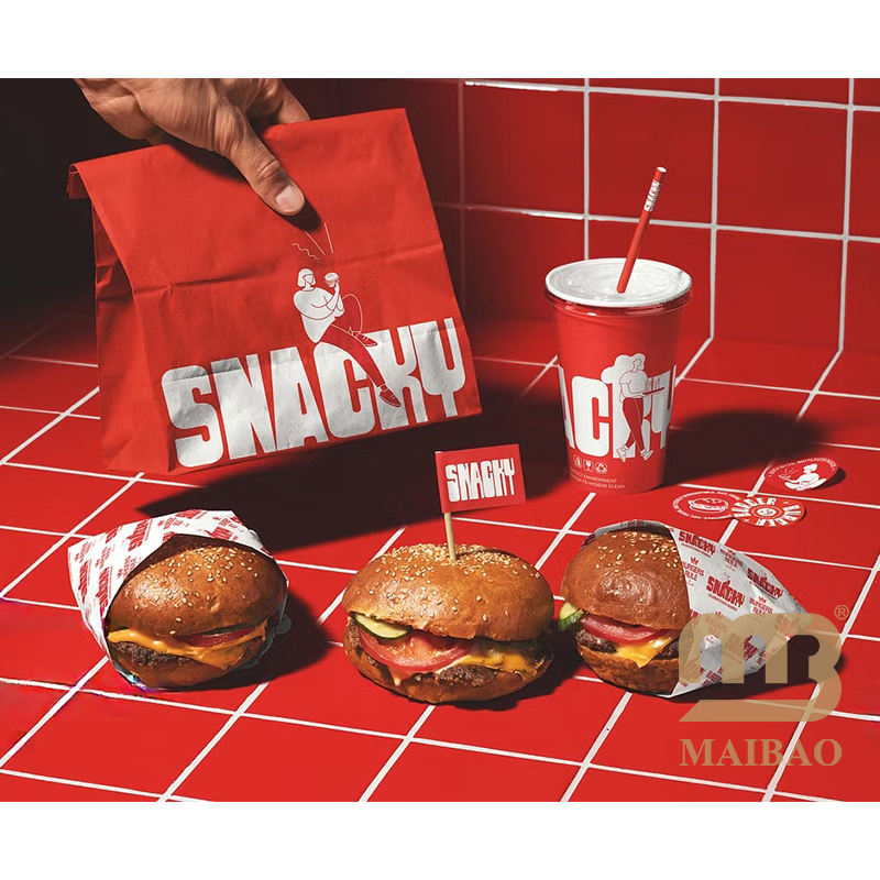 Vente en gros sac d'emballage de biscuits à la cire individuelle imprimée personnalisée pour frites croustilles hamburger hamburger sacs en papier