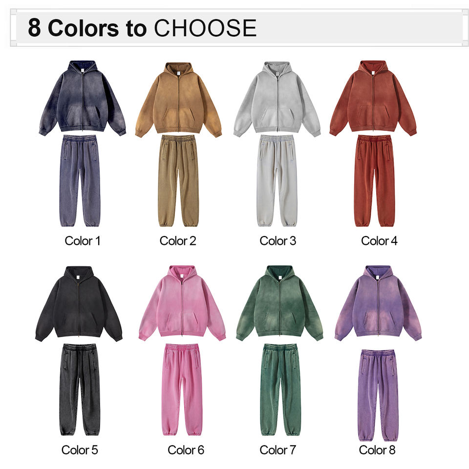 Ensembles de sweats à capuche épais vierges surdimensionnés et lourds avec logo personnalisé Ensemble pantalon de survêtement et sweat à capuche zippés pour hommes