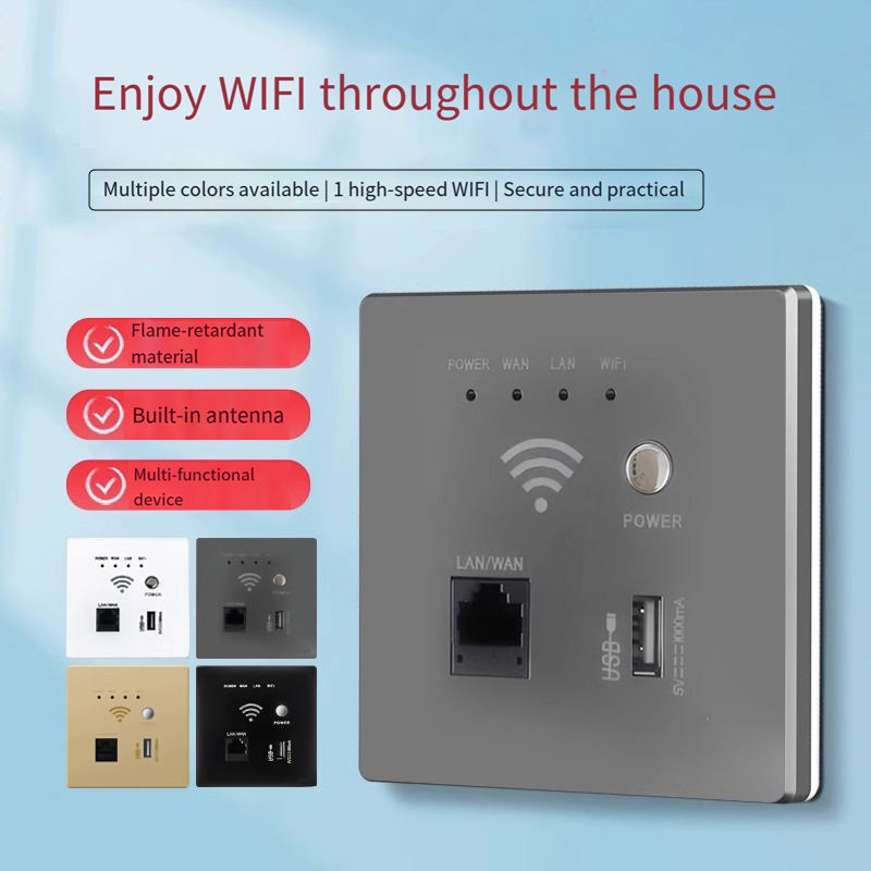 Routeur mural sans fil 5G durable avec logo personnalisé, 86*86mm, multifonction AP/WIFI, fabriqué en matériau PC, routeur 300/1000 Mbps, prise