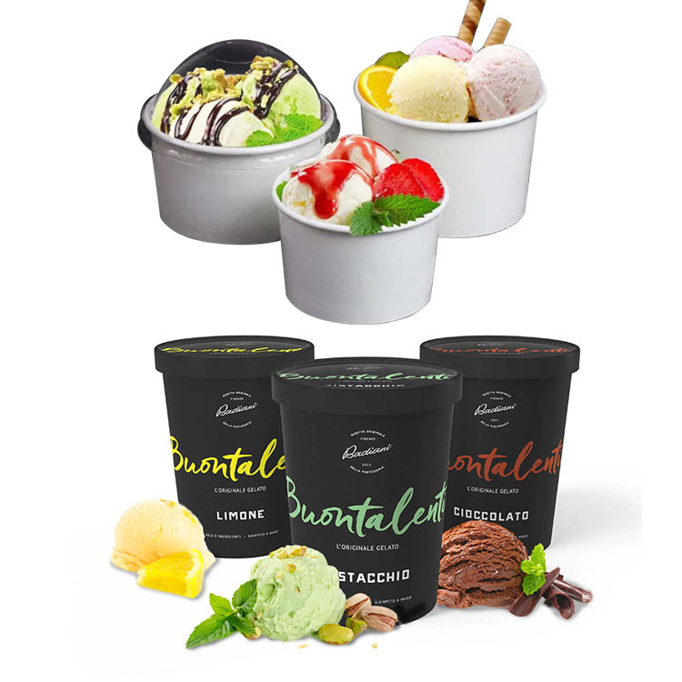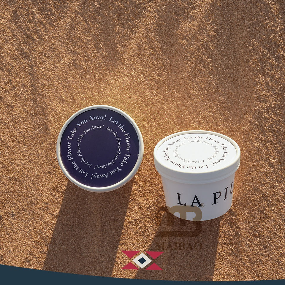 Tube de baignoire de conteneur d'emballage de dessert jetable écologique de qualité alimentaire de logo personnalisé 8oz tasse de papier de crème glacée de yaourt avec couvercle