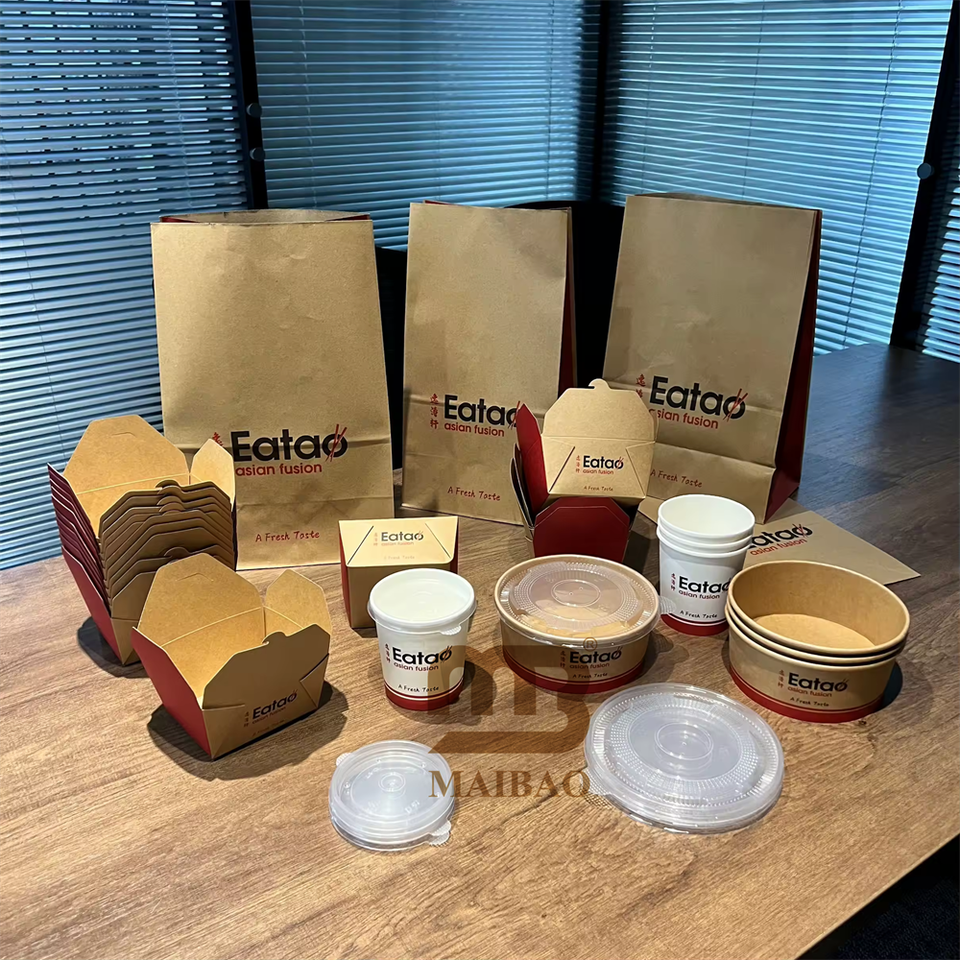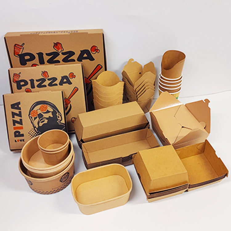 Logo personnalisé Aliments à emporter Conteneur en papier kraft à emporter Poulet frit Burger Frites Pizza Boîtes d'emballage en carton Plateau Seau Bolw