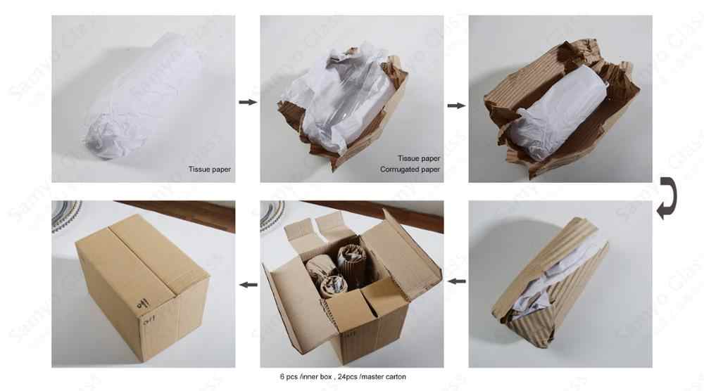 Une pièce avec du papier de soie, du papier ondulé, 6 pièces dans une boîte intérieure, 24 pièces emballent un carton principal.