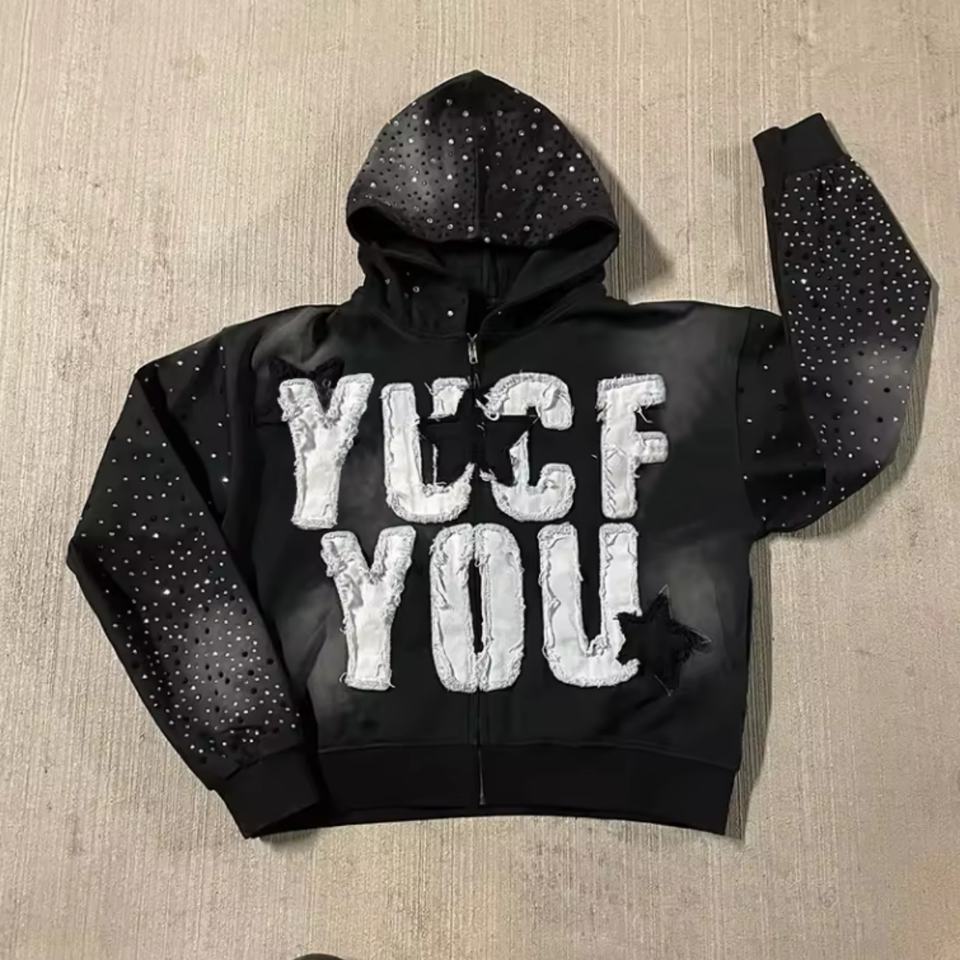 Sweat à capuche vintage à fermeture éclair, coupe courte, lourd, avec logo personnalisé, effet délavé à l'acide, broderie et patchs
