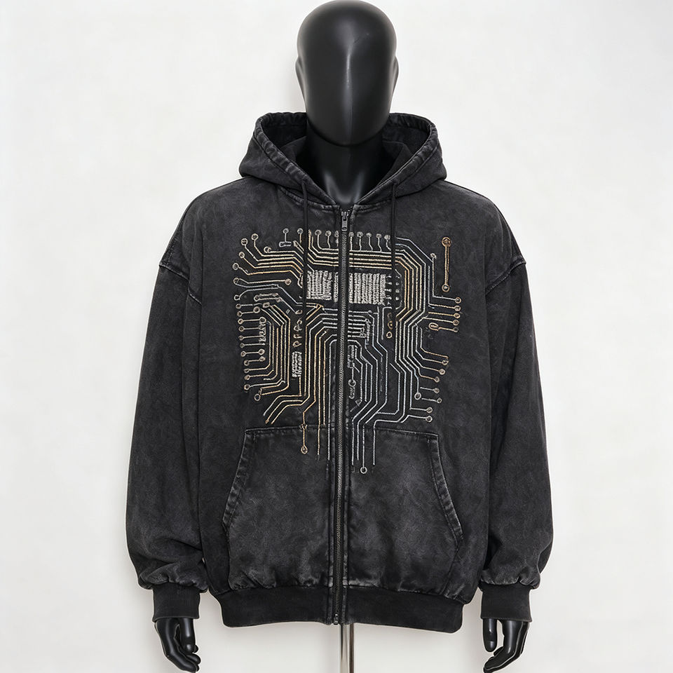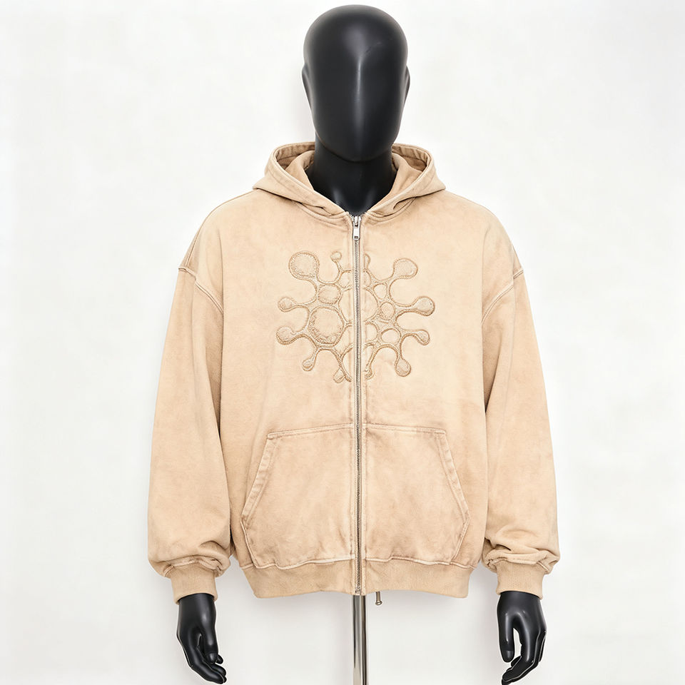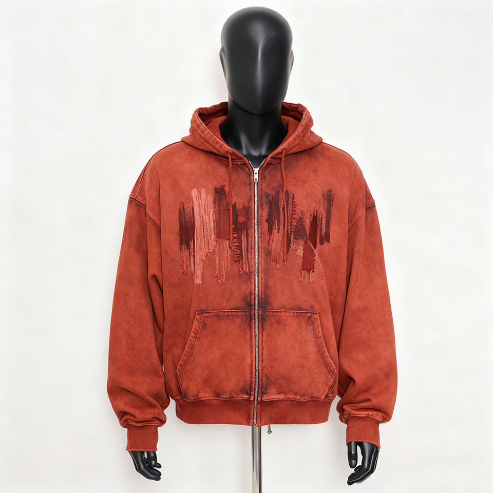 Sweat-shirt à capuche zippé en coton avec logo personnalisé, streetwear lourd 380 g/m², broderie, impression de strass, sweat-shirts et pulls