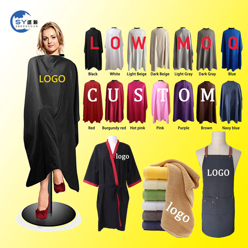 Cape de salon de qualité supérieure avec logo personnalisé, vente en gros, cape de coiffure pour barbier, coupe de cheveux, rouge, brun, noir, tissu de cape, robe pour clients