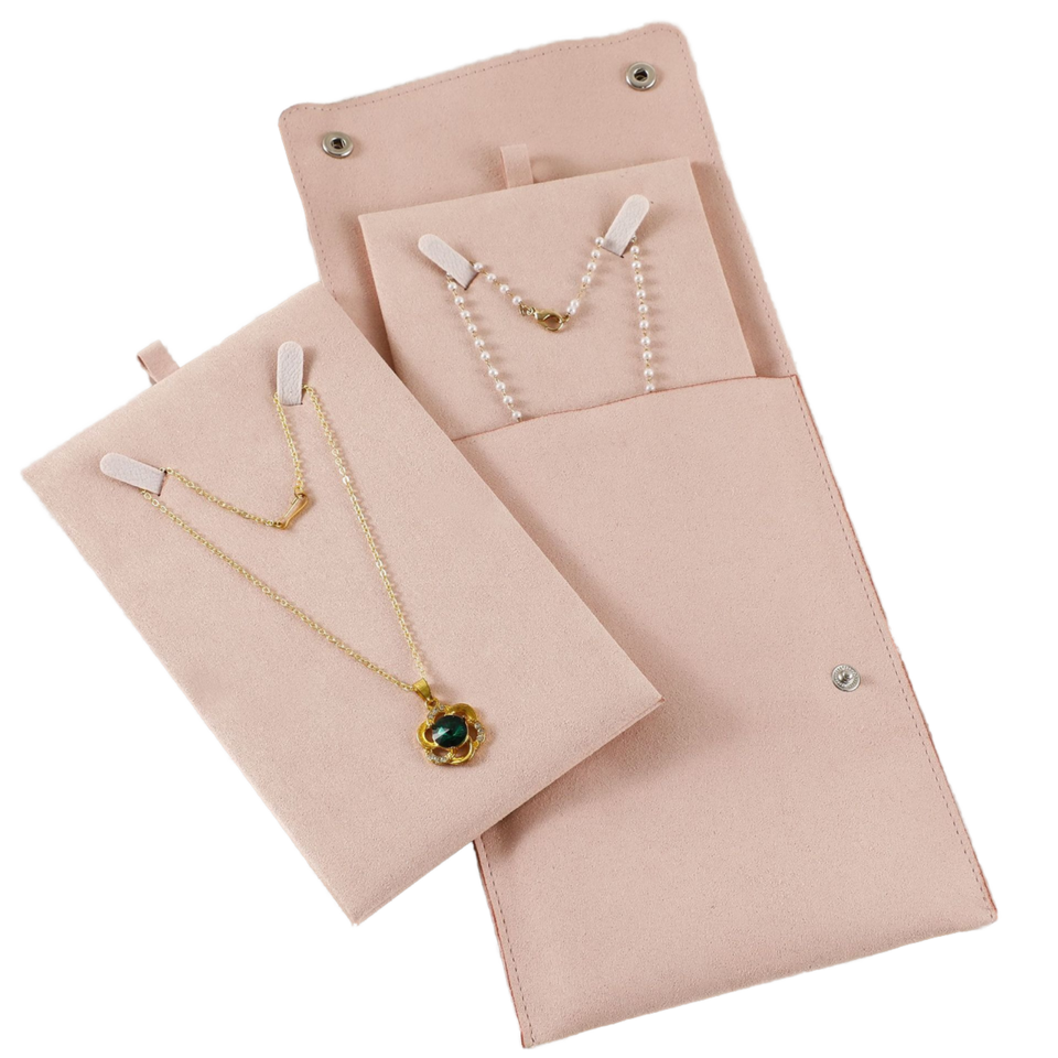 Pochette à bijoux pliable en microfibre de haute qualité avec logo personnalisé, lavable, avec emballage pour collier, pour emballage cadeau