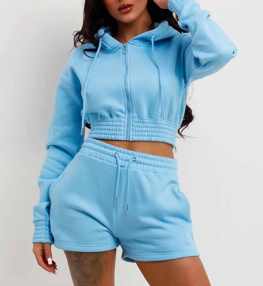 Logo personnalisé Tenues d'été de haute qualité Vêtements pour femmes Sweat à capuche court et ensemble assorti Joggers Survêtement Costume deux pièces