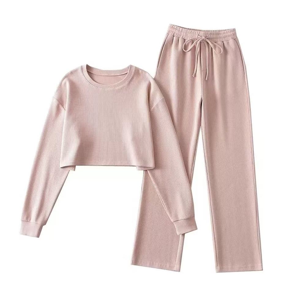Sweats à capuche avec logo personnalisé Ensemble 2 pièces à capuche Ensemble pour femmes Manches longues Col rond Crop Top Pantalon de survêtement et sweat à capuche Ensemble pour femmes