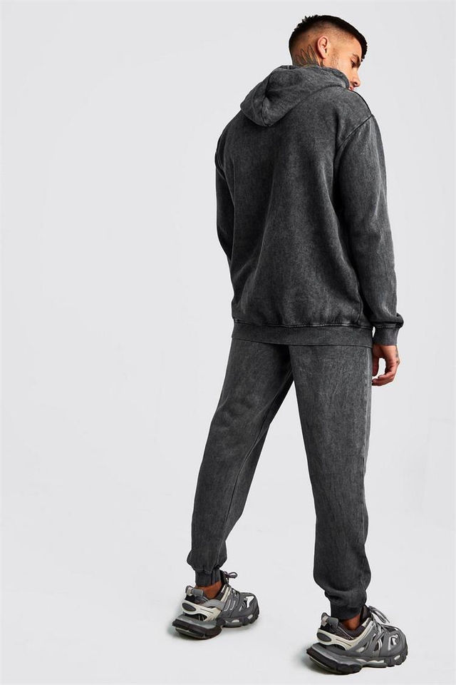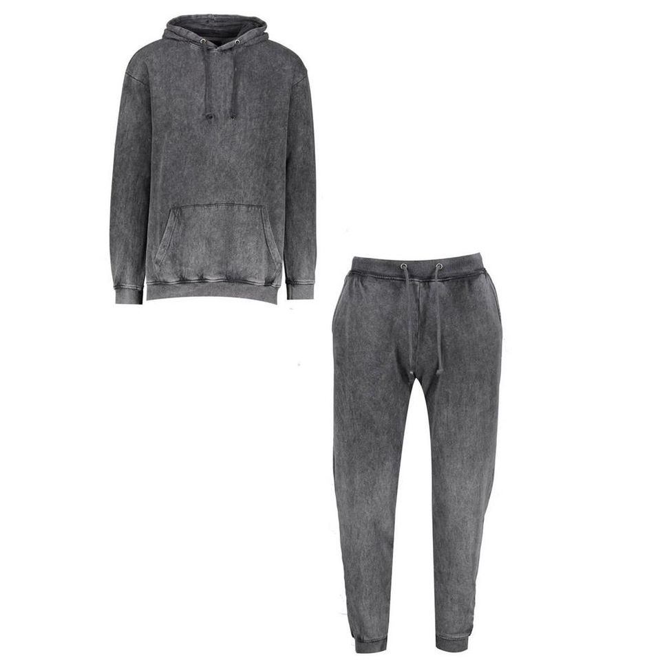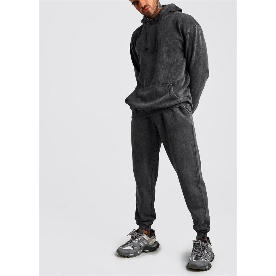Logo personnalisé Ensemble de 2 pièces jogging sweat à capuche de couleur unie vintage vêtements d'entraînement délavés à l'acide survêtements pour hommes