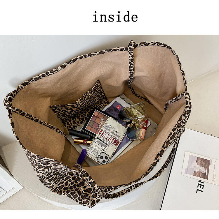 Logo personnalisé grande capacité femmes mode imprimé léopard épaule décontracté week-end sac à provisions toile sac fourre-tout avec poche