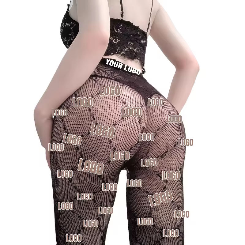 Collants en dentelle avec logo personnalisé bas fins résille creux solides collants jacquard sexy personnalisés