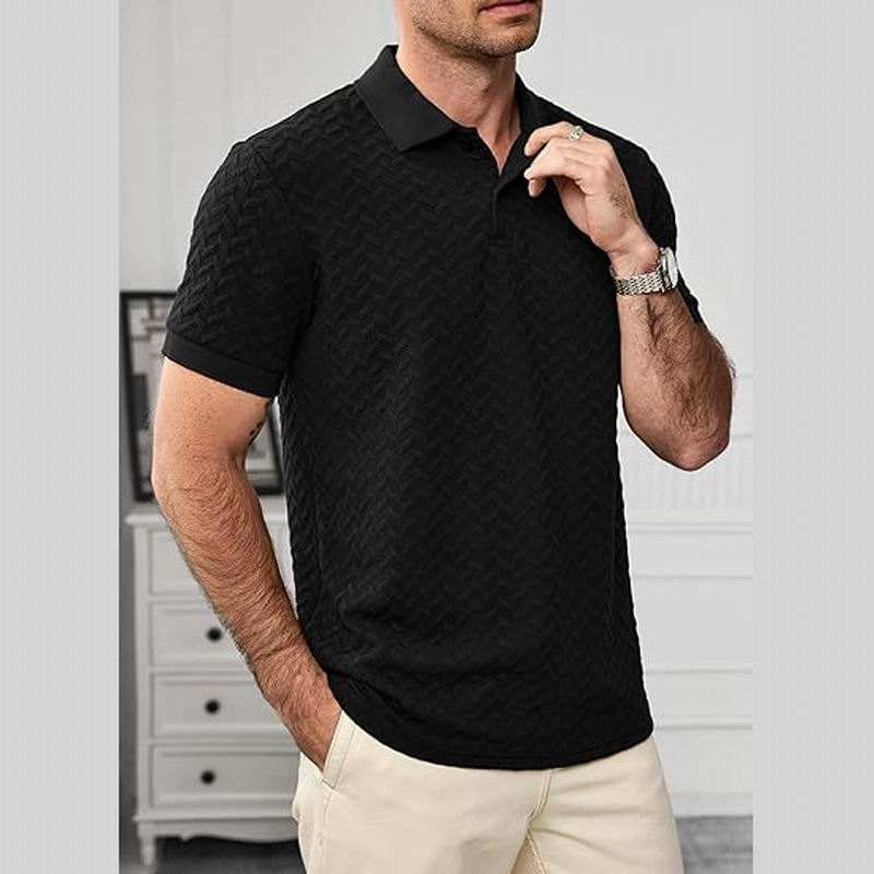 Polo en maille pour homme avec logo personnalisé, à carreaux Walf, manches courtes, texturé, décontracté, pour le golf, col polo, t-shirt