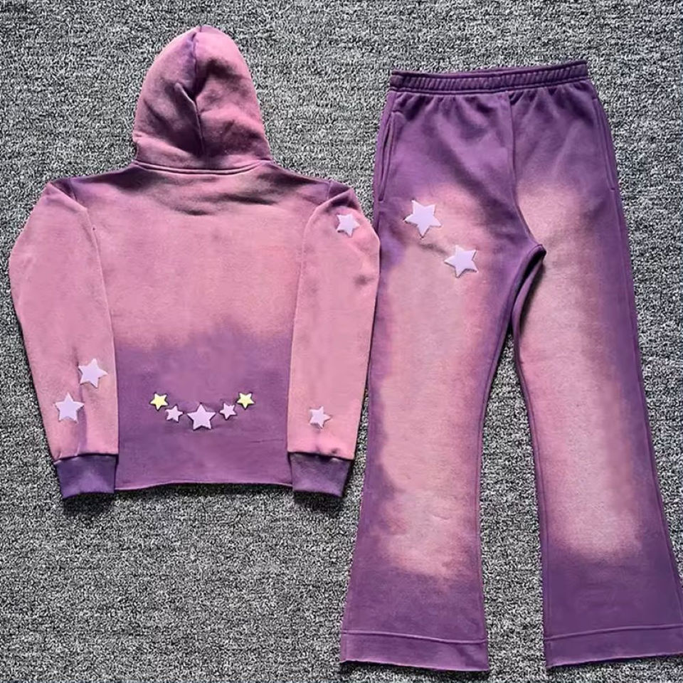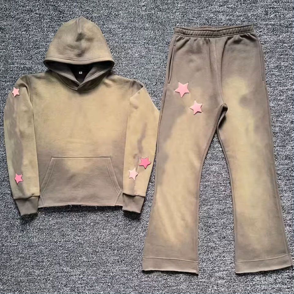 Ensemble Sweat à capuche et pantalon de survêtement évasé style vintage 500gsm avec logo personnalisé pour hommes survêtement délavé au soleil survêtement