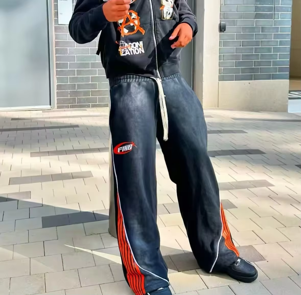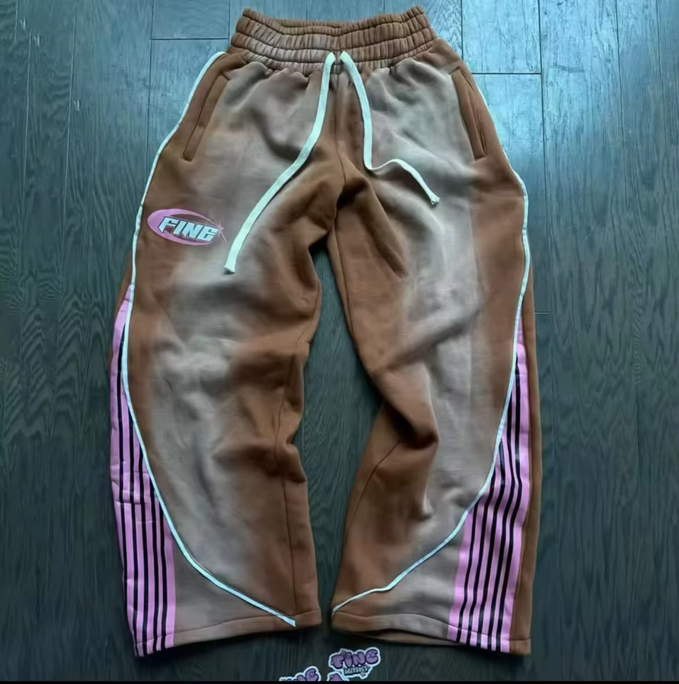 Logo personnalisé Pantalons pour hommes imprimés Pantalons de survêtement en coton épais Pantalons de survêtement délavés à rayures pour hommes Pantalons de survêtement à jambes larges Pantalons de survêtement délavés au soleil 2025