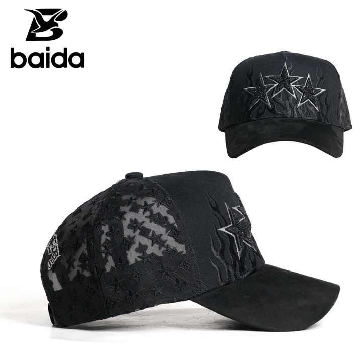 Casquettes de camionneur en maille avec logo personnalisé et broderie 3D, casquettes de baseball en daim avec strass, gorras de haute qualité en gros
