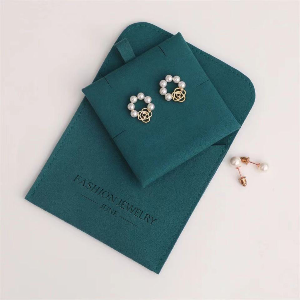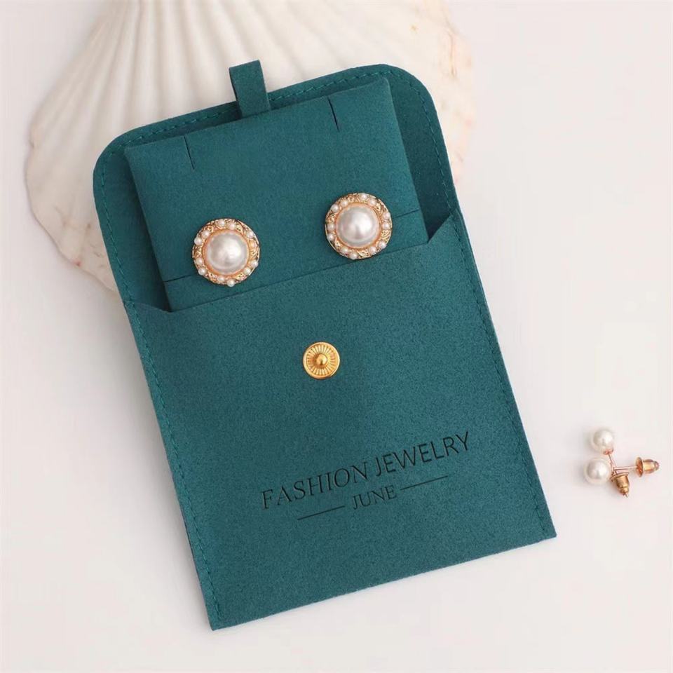Pochette à bijoux en microfibre avec logo personnalisé, fermeture à bouton-pression et insert, pochette à bijoux en microfibre haut de gamme vert foncé