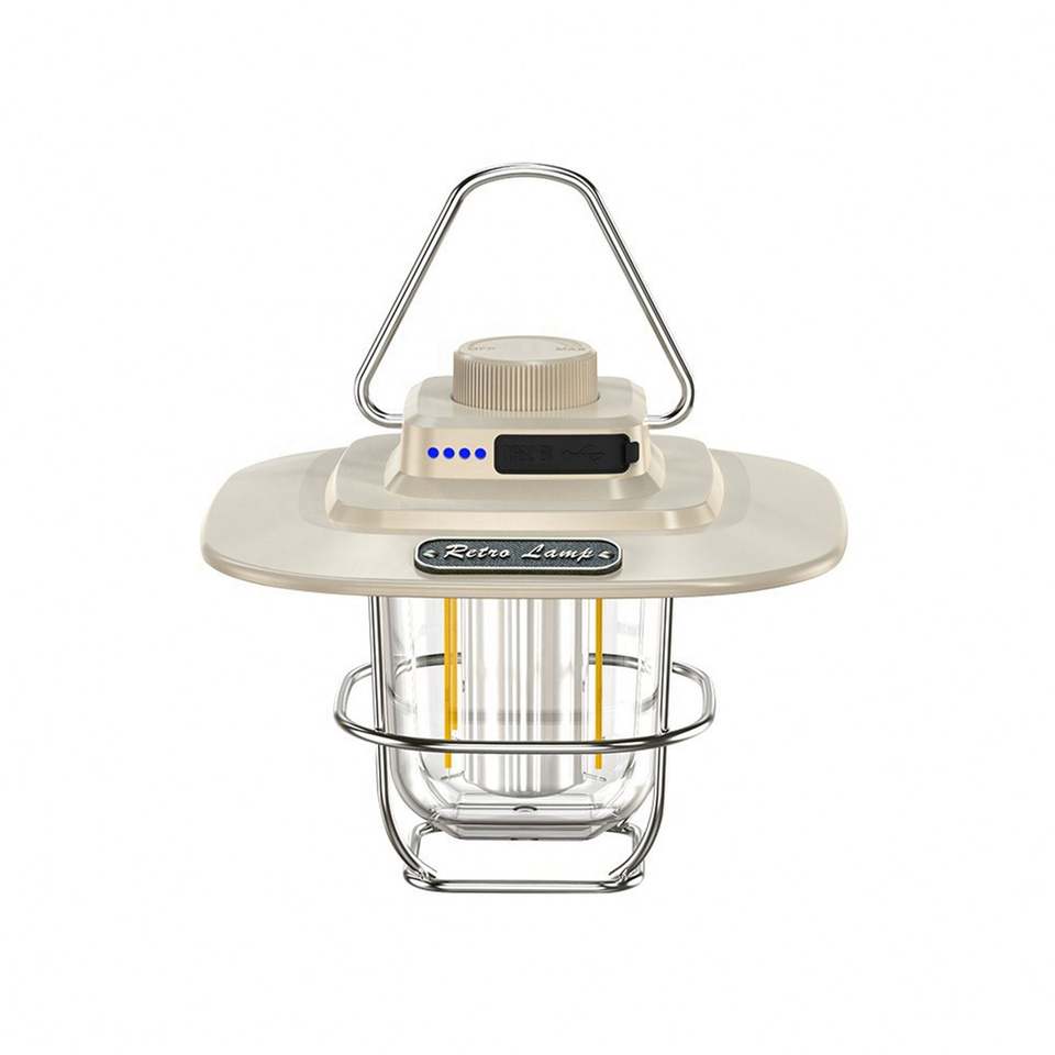 Lanterne de camping multifonctionnelle avec logo personnalisé, rechargeable par USB, style rétro, portable, pour randonnée et situations d'urgence, avec lumière LED