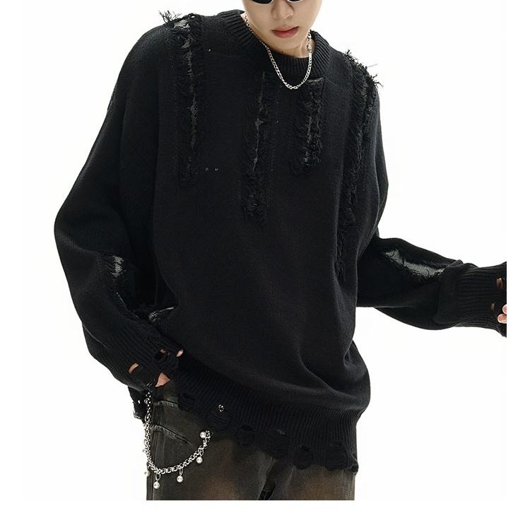 Logo personnalisé OEM & ODM Pull Hop Tricotage décontracté avec pull américain cassé de grande rue européen et américain