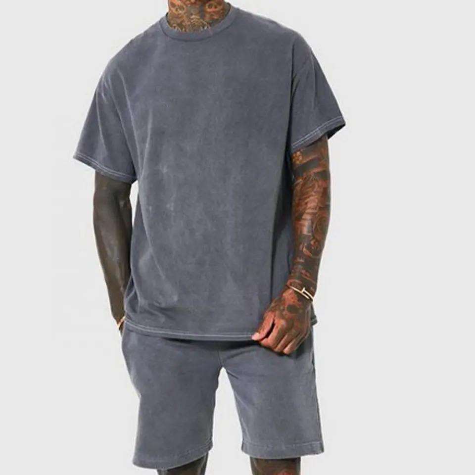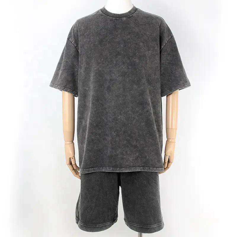 Logo personnalisé OEM survêtement vintage personnalisé deux pièces court lavage à l'acide surdimensionné coupe-vent t-shirt ensemble court survêtement pour hommes