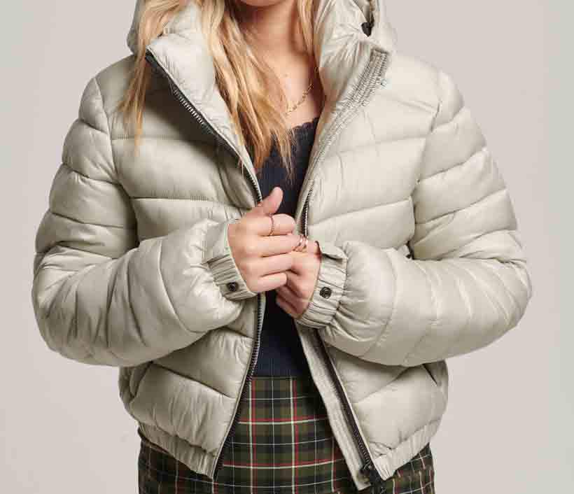 Custom Logo Women's Down Puffer Jacket Outdoor Warm Heated Bubble with Zipper Closure Breathable Plus Size Fashion Print Pattern